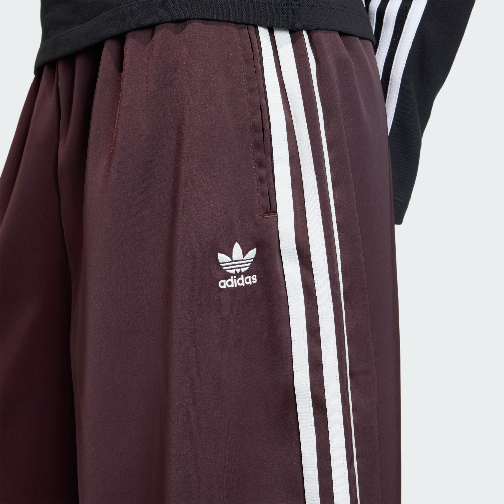 새틴처럼 반짝이는 이 트랙 팬츠를 만나보세요.