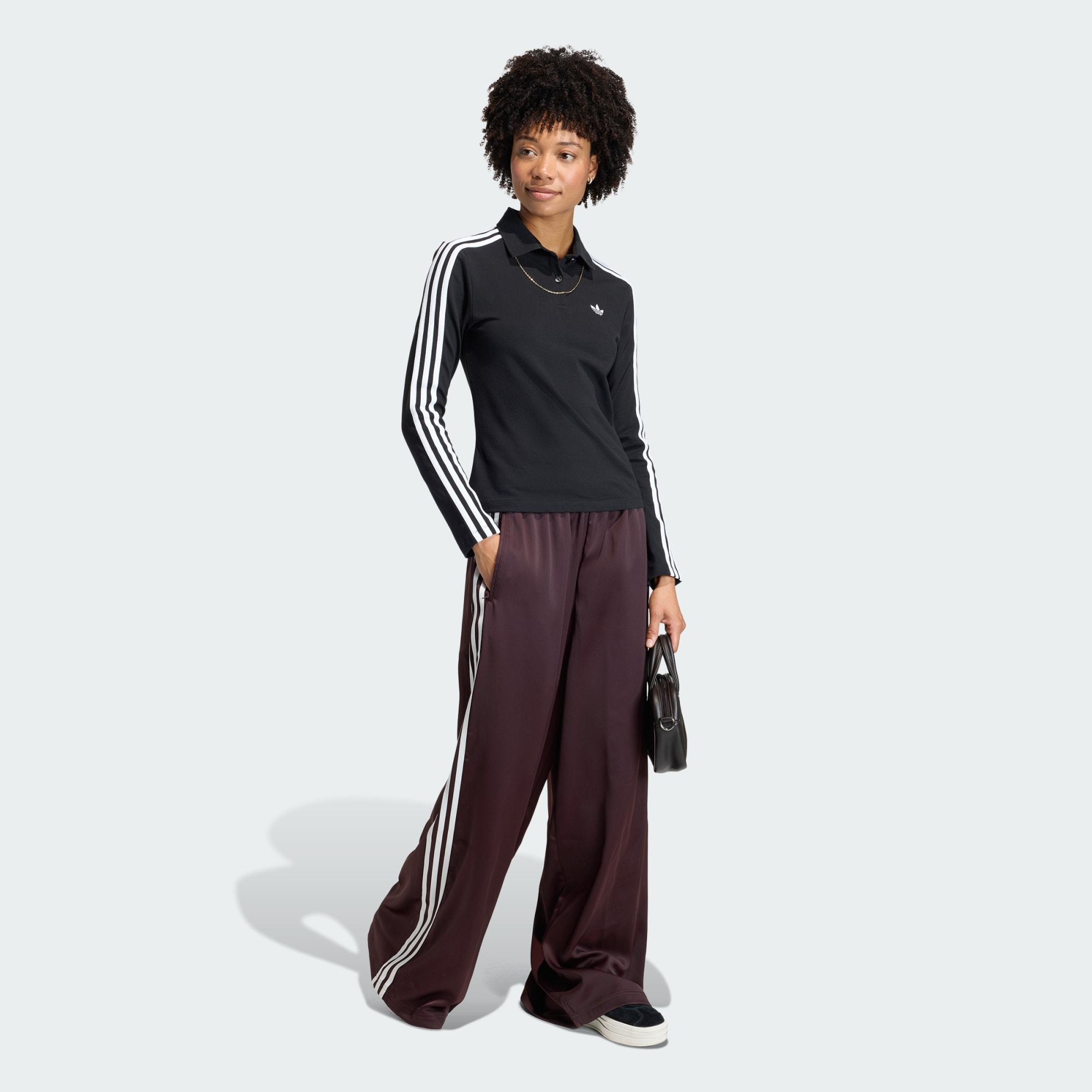이 와이드 레그 트랙 팬츠는 아디다스의 헤리티지를 담아내면서도 미래를 향해 나아가는 디자인이 돋보이는 아이템입니다. 여유롭고 흐르는 듯한 핏으로 편안한 캐주얼 실루엣을 연출하여 활동성을 높여줍니다. 럭서리한 고급 새틴 소재로 제작되어 우아함을 발산하며, 저녁 외출이나 캐주얼한 브런치에 입고나가기에도 좋습니다. 다리 양쪽을 따라 흐르는 시그니처 3-스트라이프는 룩 자체만큼이나 시대를 초월한 디테일을 느끼게 합니다.