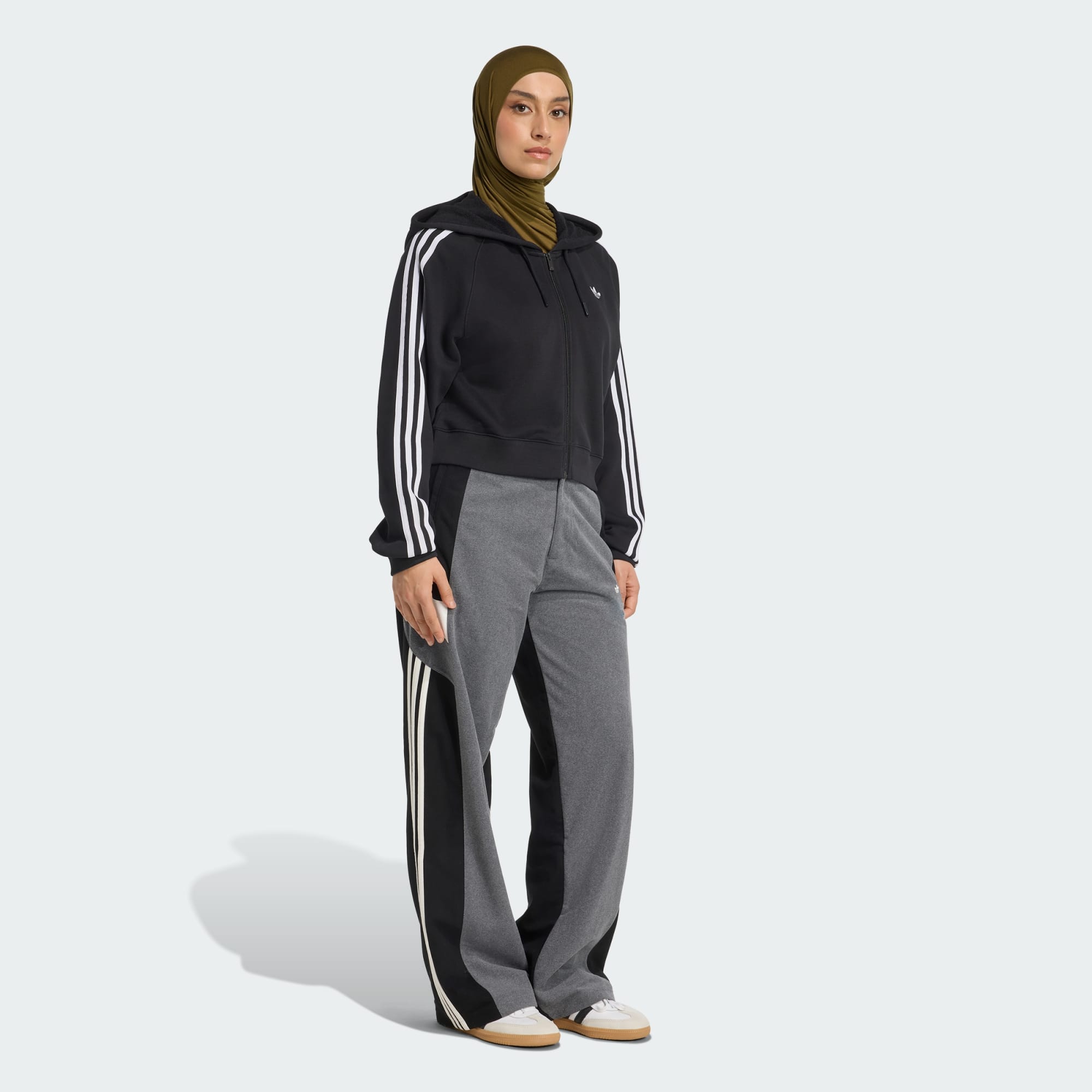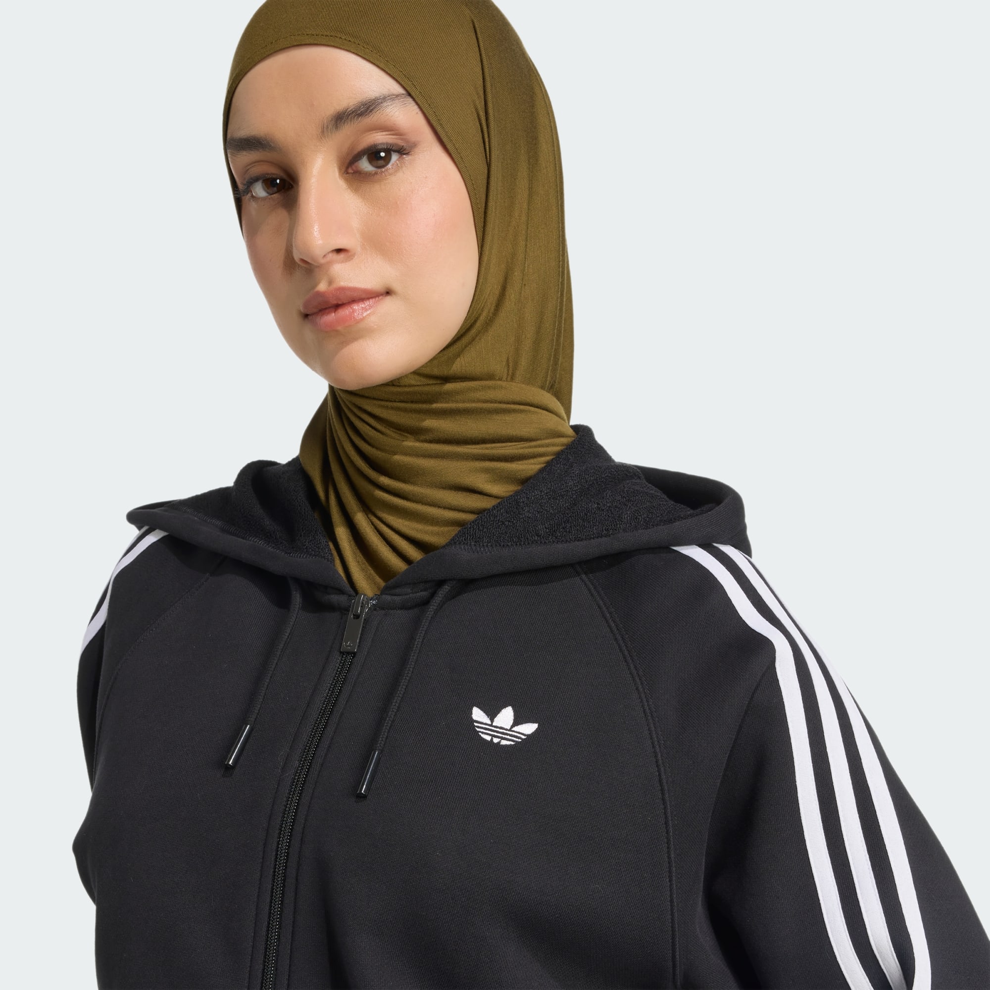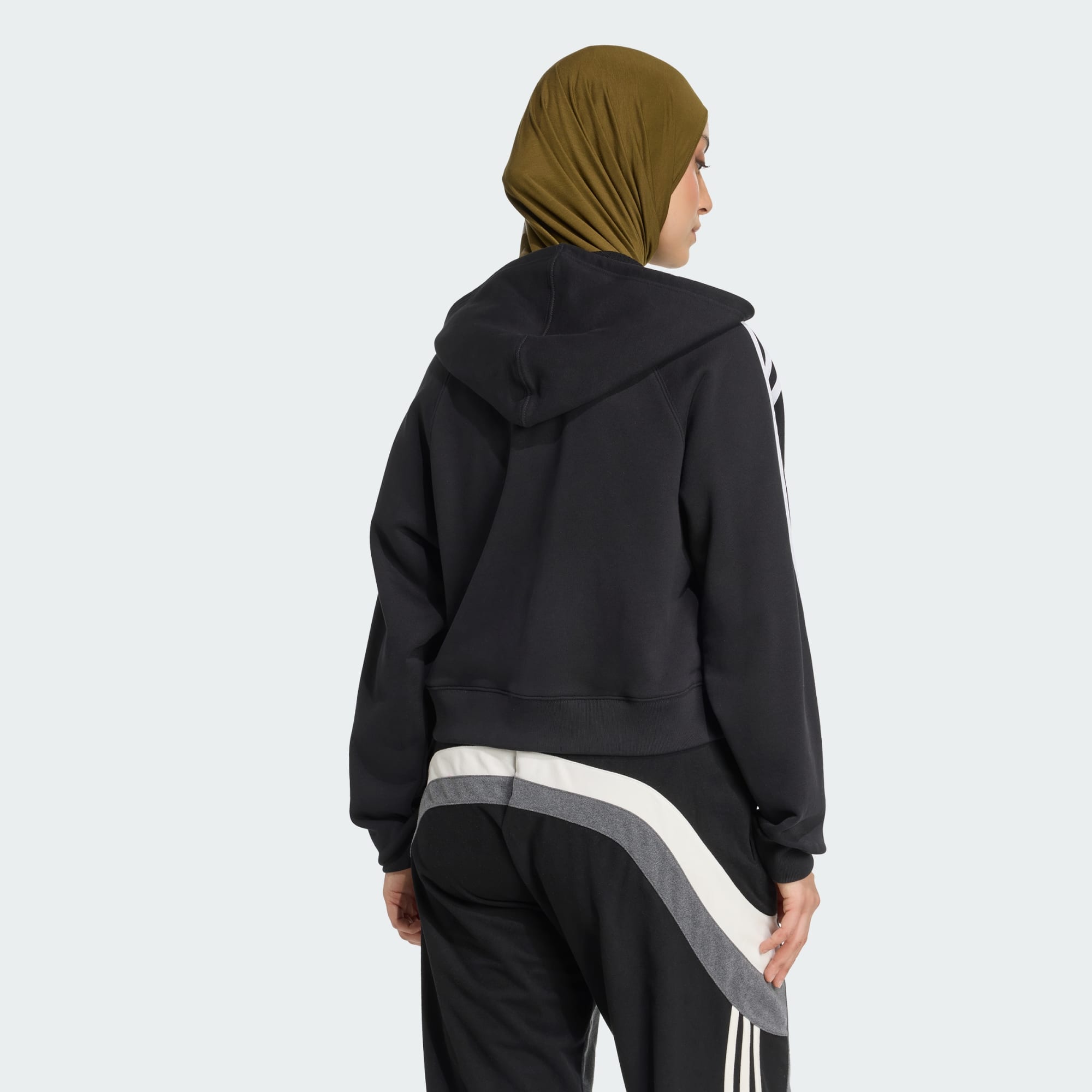 아디컬러 3-스트라이프 숏 지퍼 후디