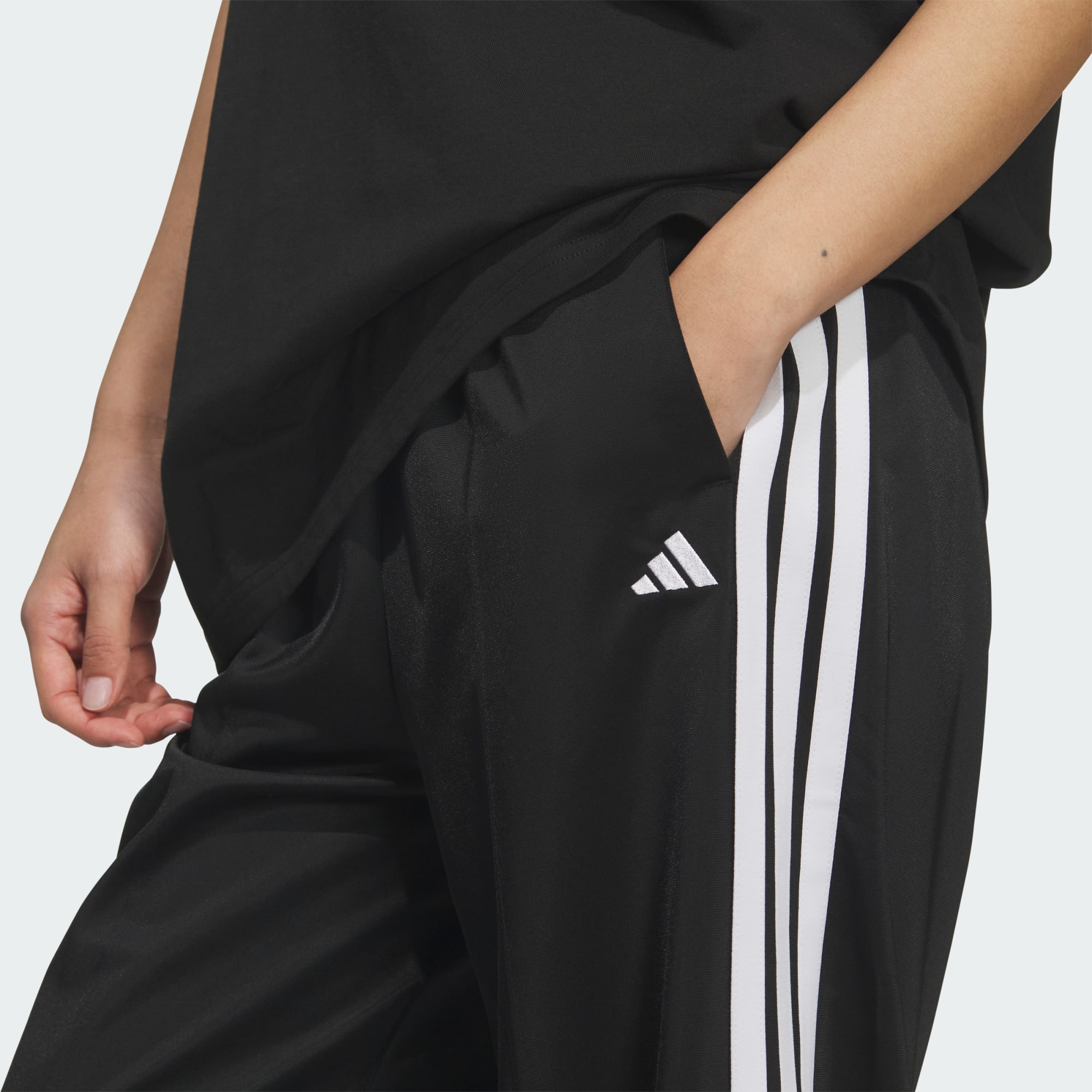 트라이콧 루즈 핏 스트레이트 오픈 헴 팬츠