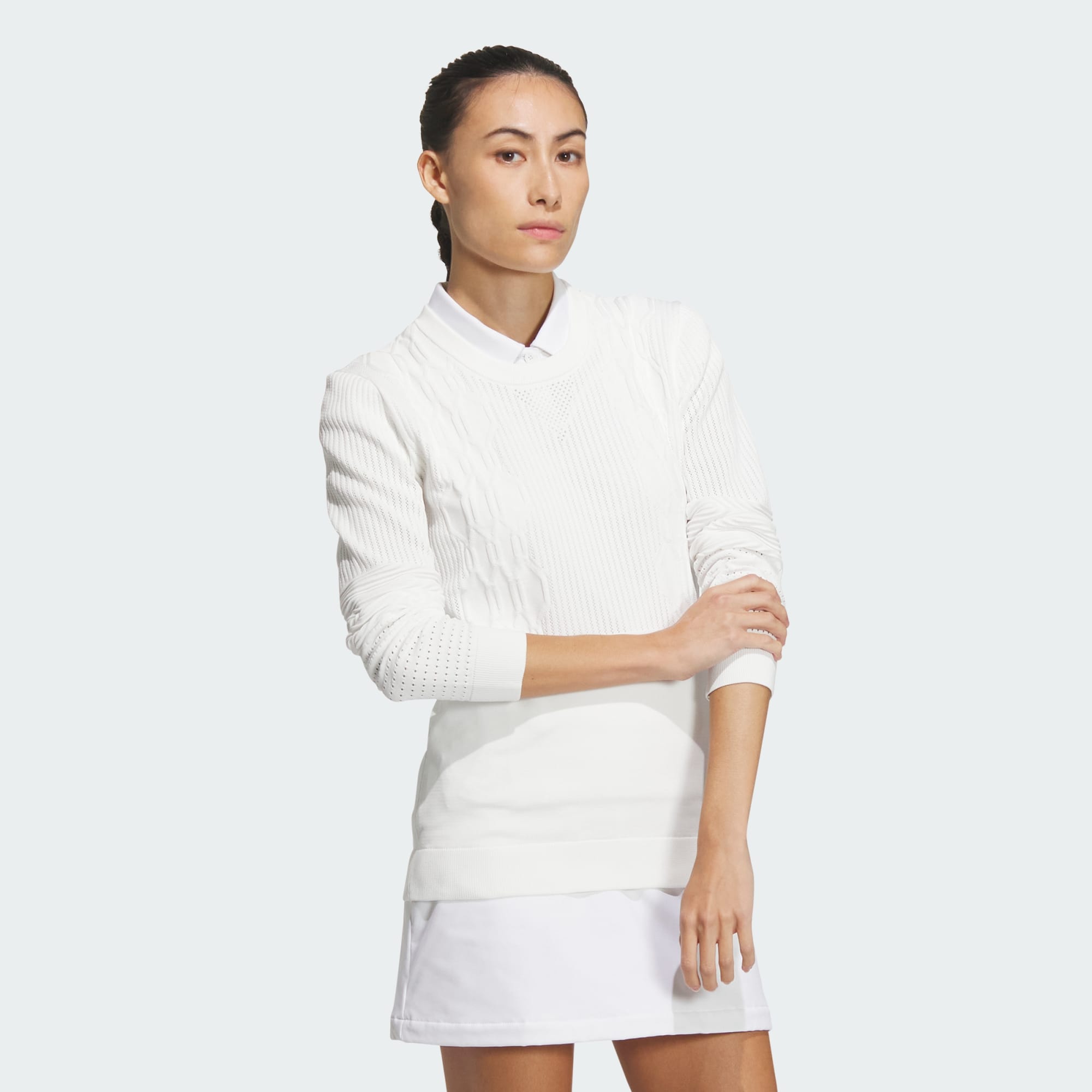 프라임니트 그라데이션 패턴 롱 슬리브 크루넥 풀오버