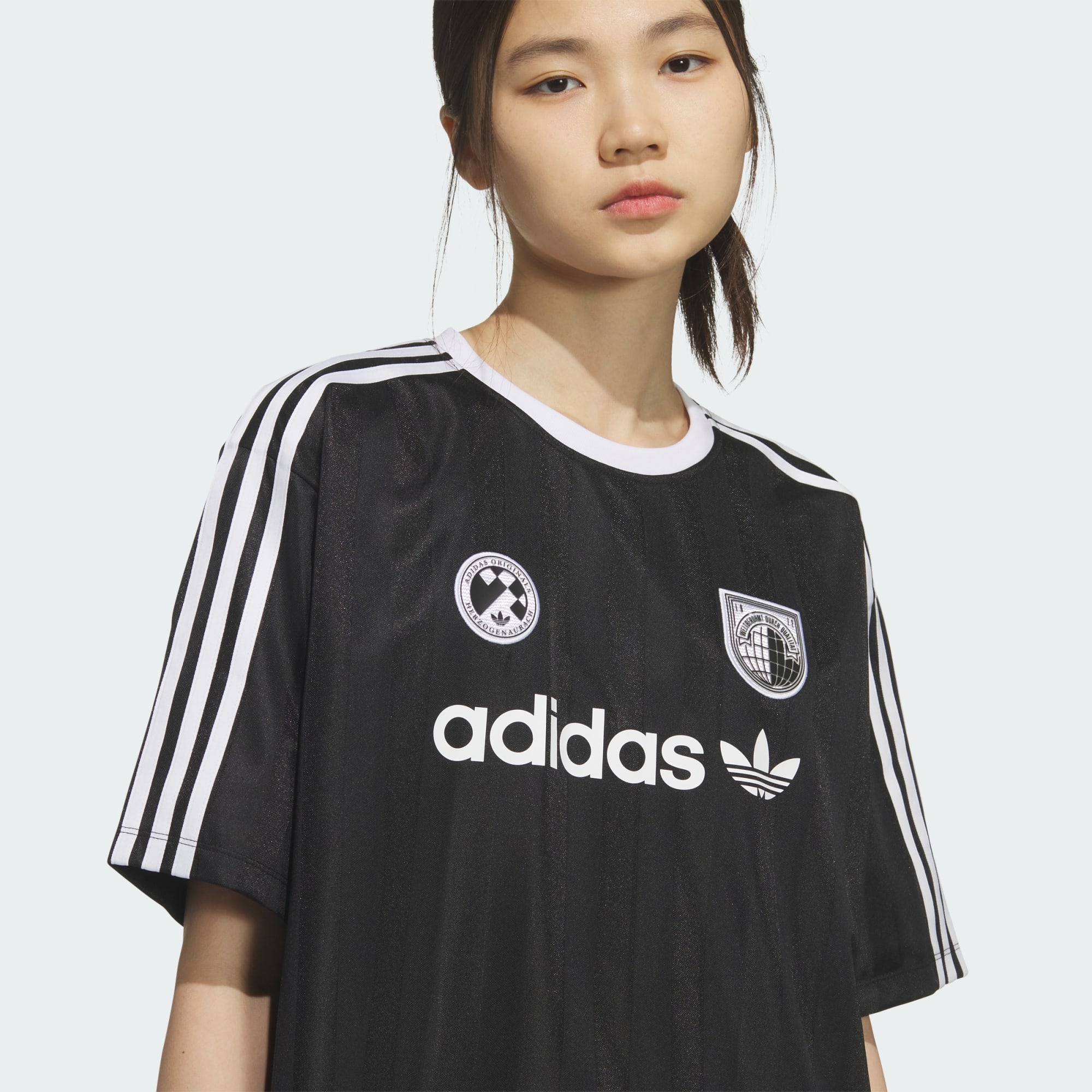 모던한 스트리트 감각을 더한 클래식 축구 저지.